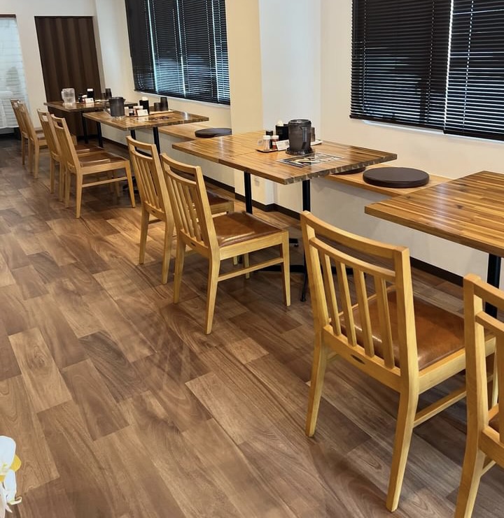 店内は清潔感のある雰囲気で、カウンター7席とテーブル16席があります。