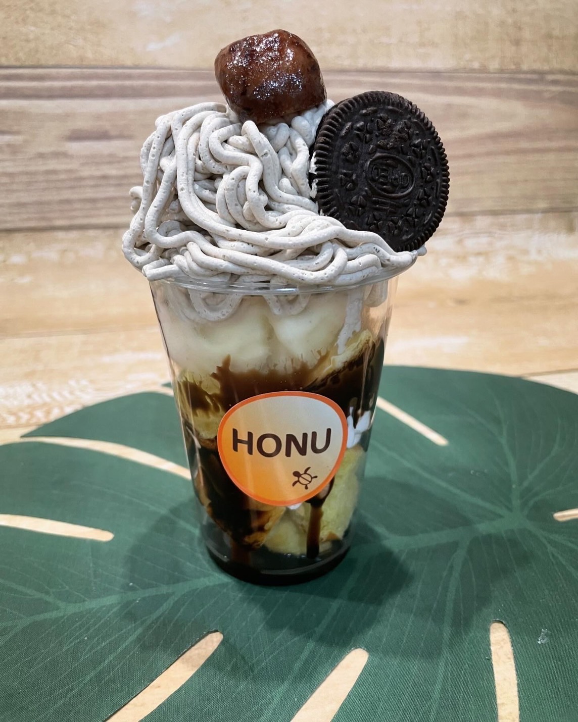 3つ目は、HONU Bakery&pastryの「ドーナッツモンブランパフェ」。