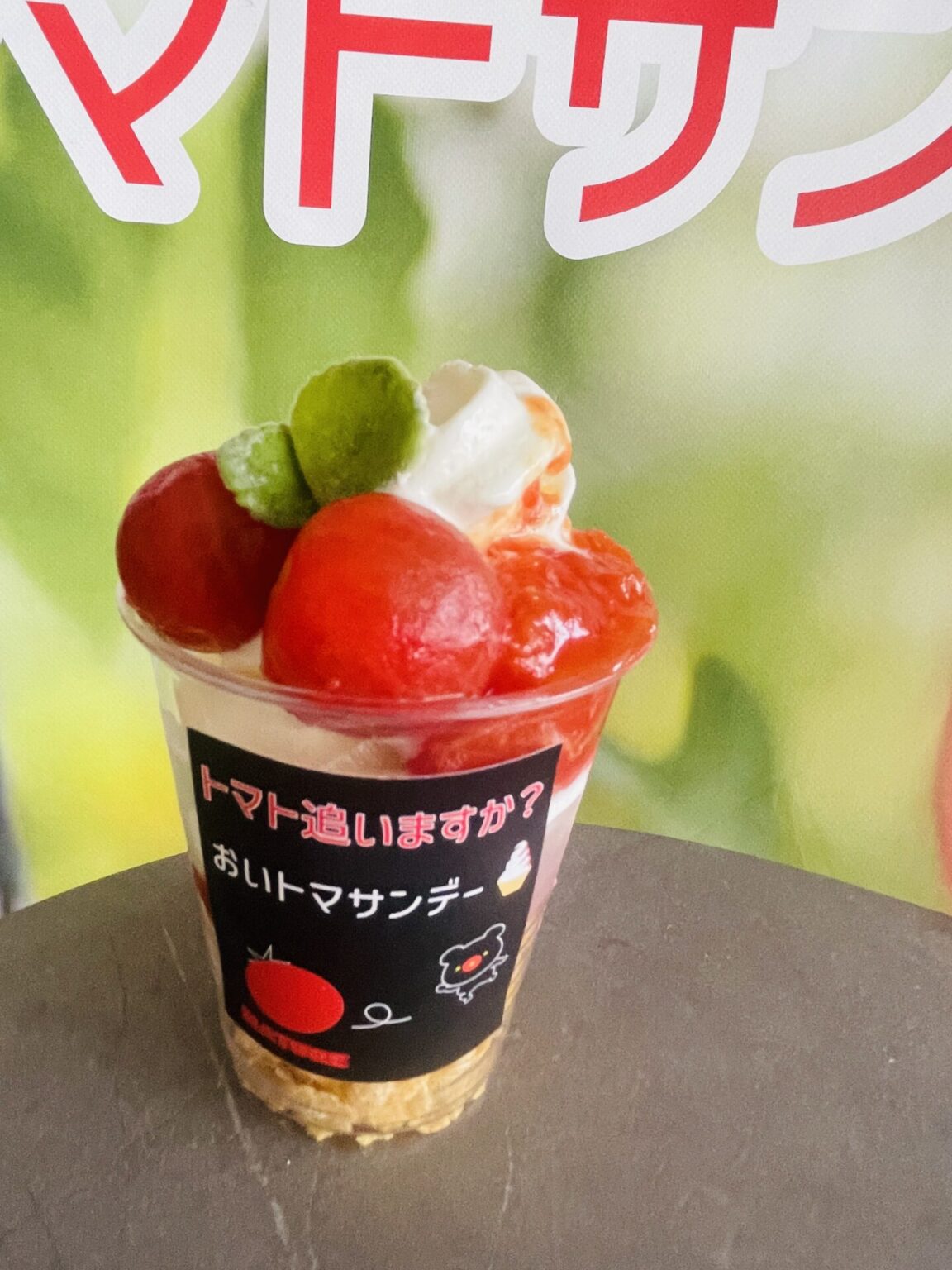若松トマト農家が本気で作るトマトサンデーがさらにバージョンアップされています。 濃厚でクリーミーなソフトクリームをトマトの爽やかな甘みと一緒に堪能できるそうです。