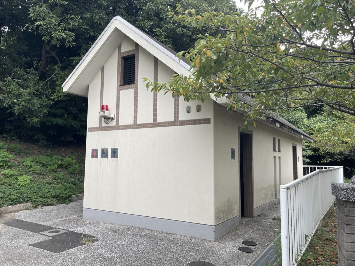 階段を登るとすぐ独特な屋根の形をしたお手洗いがありました。トイレットペーパーはないので注意が必要です。