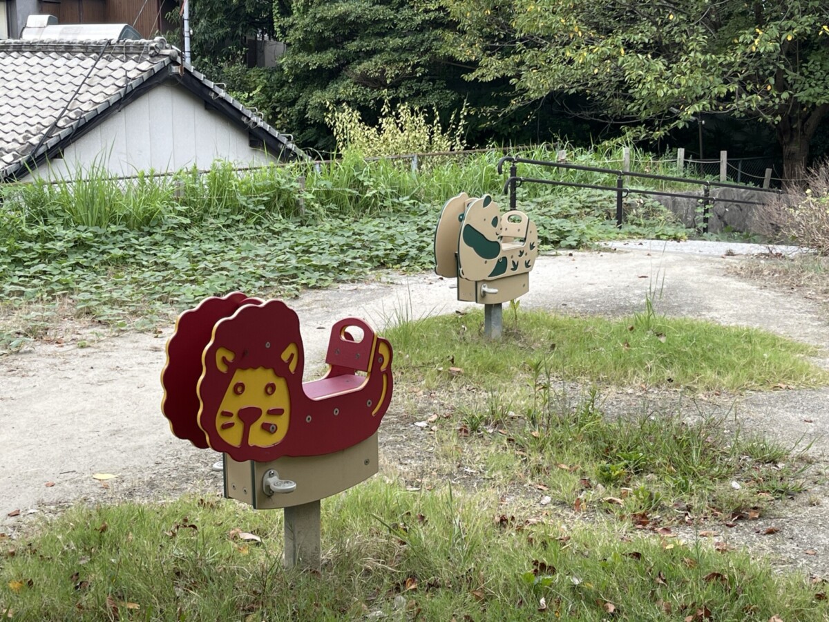 その奥には、ライオンやパンダの形をした揺らして遊ぶ遊具もありました。
