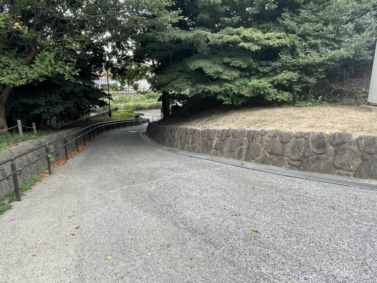 遊具広場を抜けると、坂道がありました。