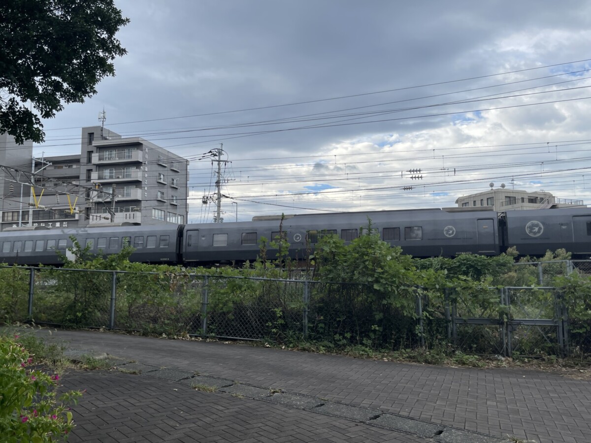 坂を下った入り口の近くにはJR鹿児島本線の線路があり、ちょうど特急列車が通っていました。