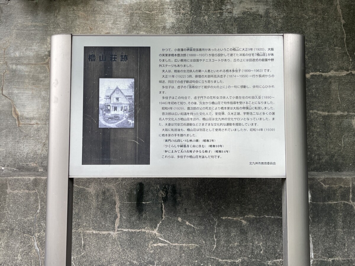 かつてこの場所に存在した「櫓山荘」は、女性俳人・杉田久女と橋本多佳子のゆかりの地であり、大正から昭和初期にかけて、“小倉の文化サロン”として多くの文化人に親しまれてきました。