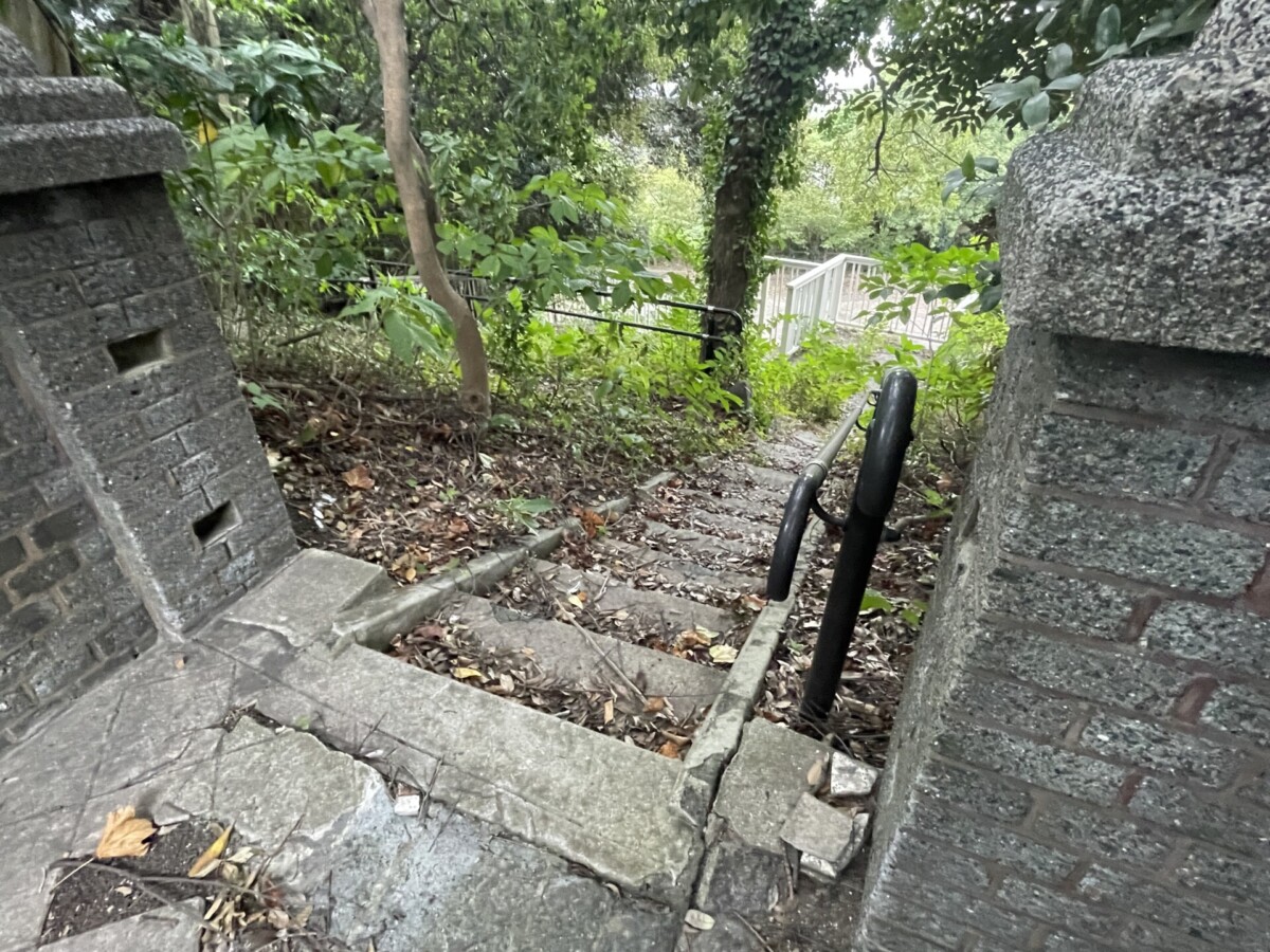 階段を登ると広場があり、ベンチや街灯も設置されていました。