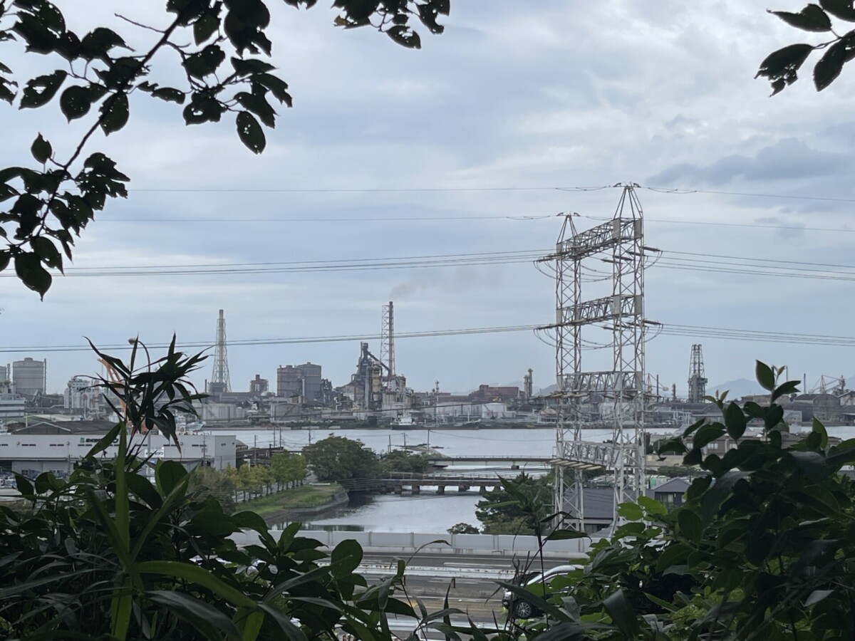 広場からは、港の工場地帯を眺めることができました。