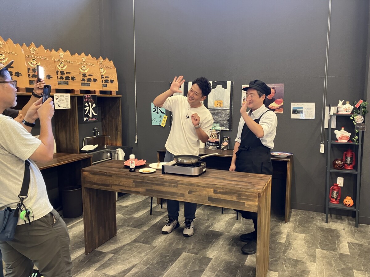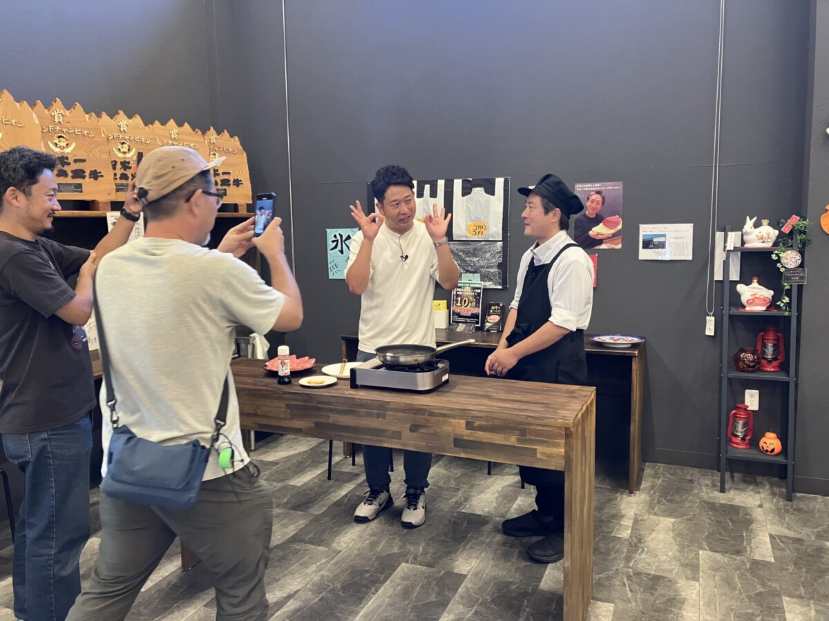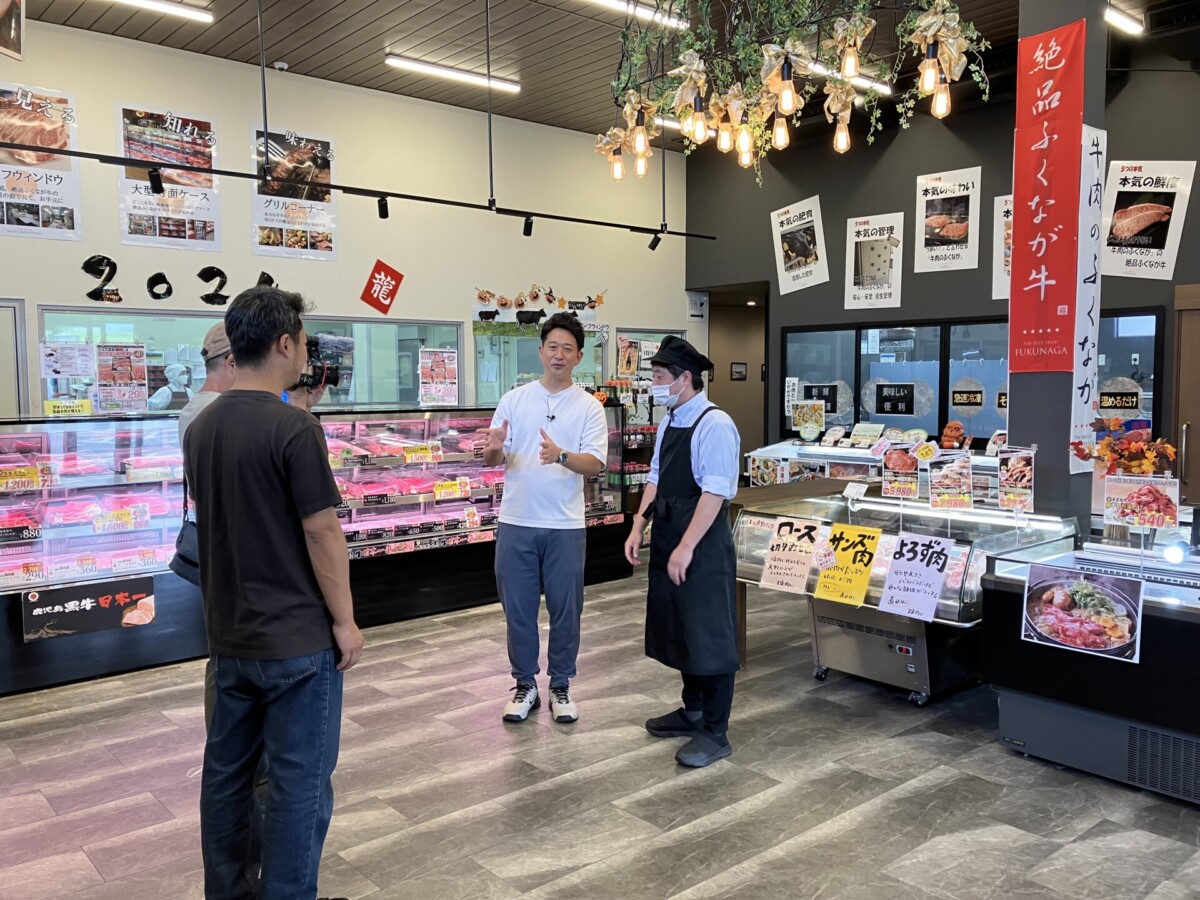 ケーブルテレビのJ:COMで14年間と長年にわたり放送されている番組「山田としあきのひと駅歩こう」に、牛肉のふくながが登場します。先日、KBC九州朝日放送の番組「アサデス。KBC」にニュースキャスターとして出演している山田としあきさんが来店し、収録が行われました!