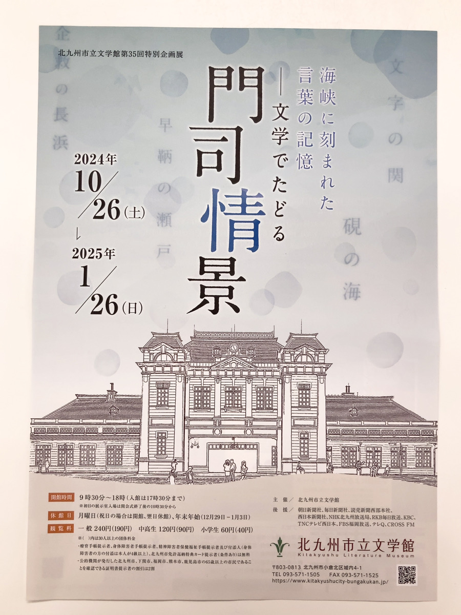 北九州市立文学館1階にある企画展示室で、第35回特別企画展「門司情景-文学でたどる」が開催されます。会期は10月26日~1月26日。