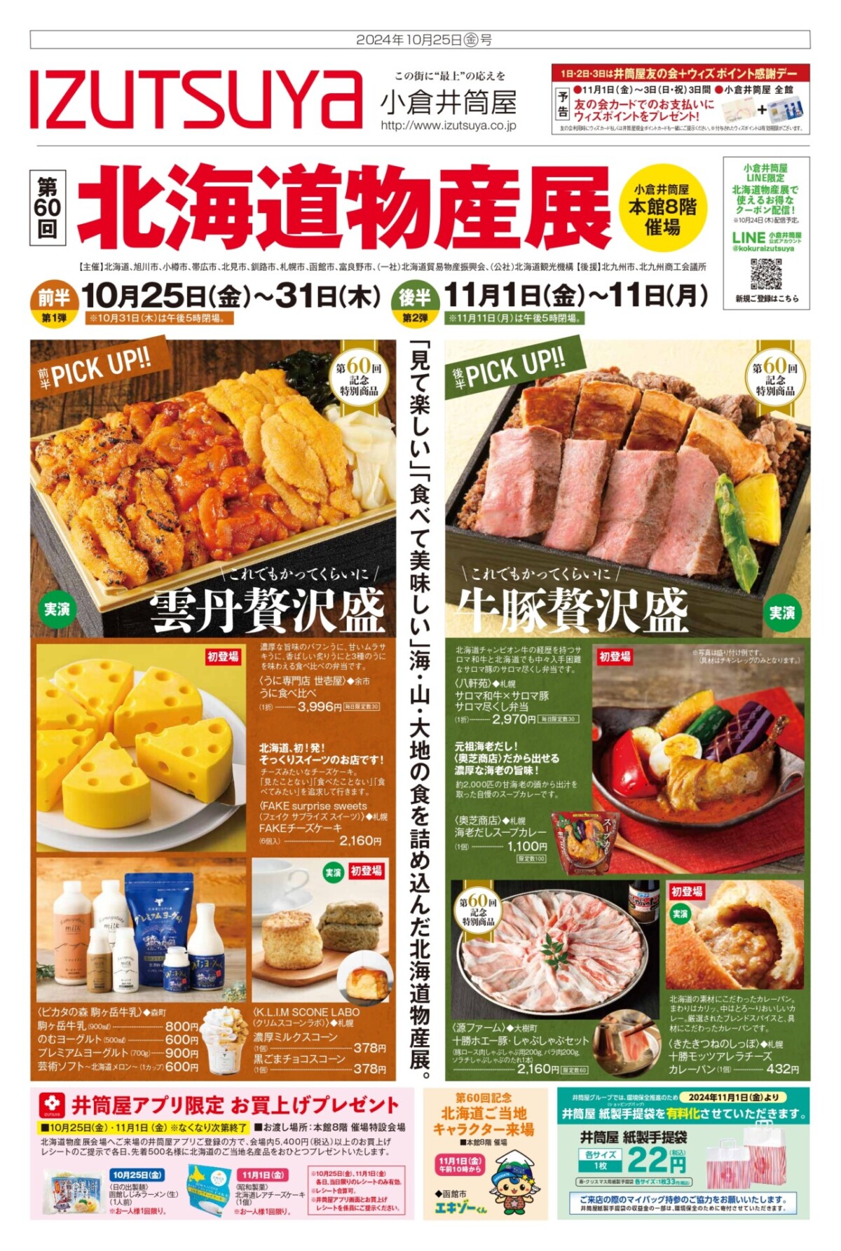 小倉井筒屋本館8階催場(北九州市小倉北区船場町1-1)で「第60回北海道物産展」が開催されます。期間は、第1弾が10月25日~31日、第2弾が11月1日〜11日となっています。
