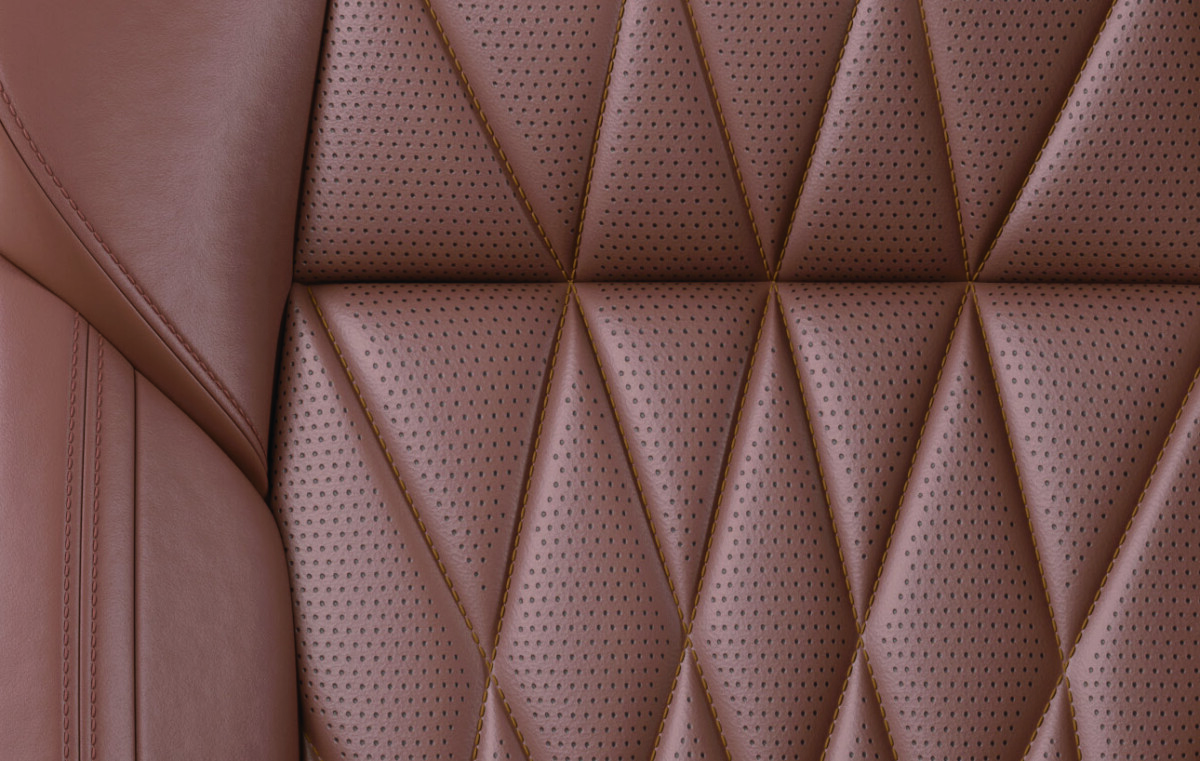 シートは、キルティングに施されたステッチで、前方から後方へ幾何学模様が広がり、躍動感があります。