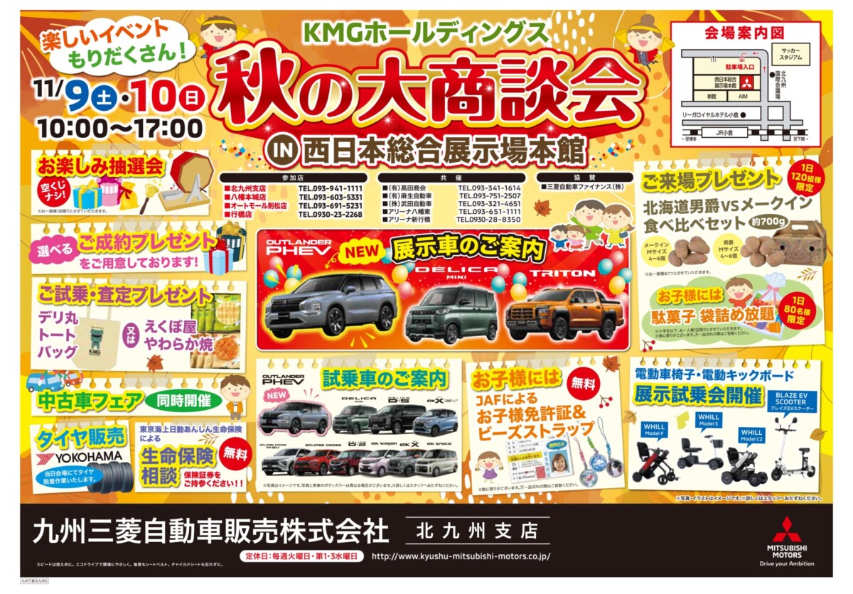 11月9日と10日の2日間、九州三菱自動車販売・北九州支店は、西日本総合展示場本館で「KMGホールディングス 秋の大商談会 in 西日本総合展示場」を開催します!