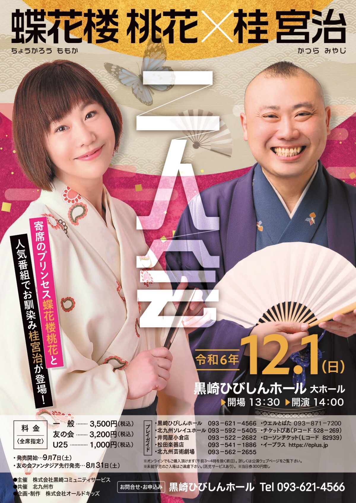 黒崎ひびしんホールで<蝶花楼桃花×桂宮治『二人会』>開催! 前売り券が発売中【北九州市八幡西区】PR