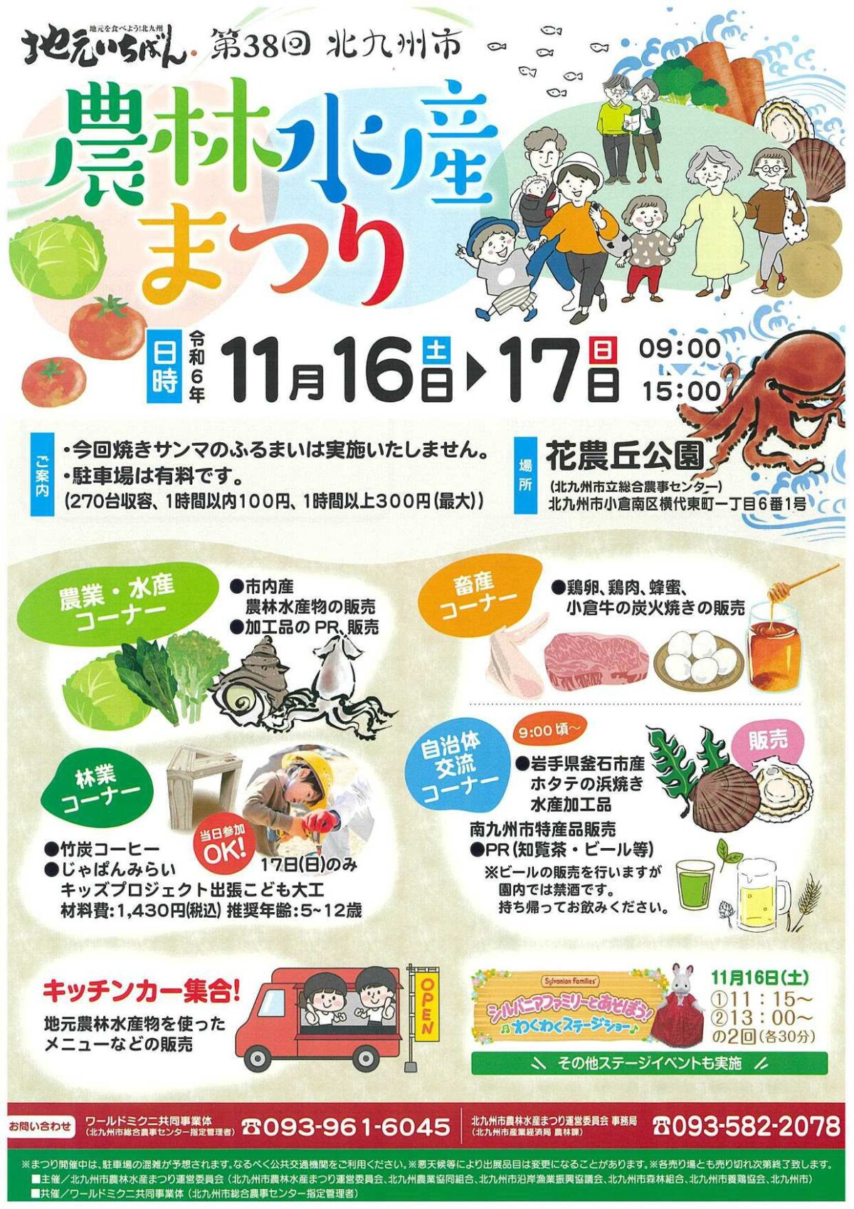 花農丘公園・北九州市立総合農事センター(北九州市小倉南区横代東町1-6-1)で11月16日 と17日の2日間、北九州市の秋の一大イベント「北九州市農林水産まつり」が開催されます。