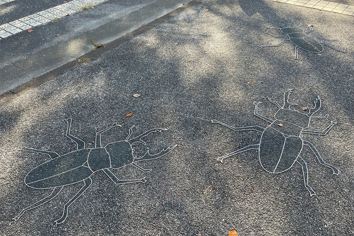 北九州市立萩原小学校と穴生中学校の間を歩いていると、歩道にたくさんの生き物がいます。