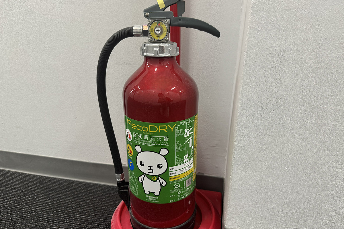 調べたところ、こちらの消火器はアルミニウム製で鉄と比較して、約60%のエネルギーでリサイクルが可能なのだそうです。さすが、エコな街北九州ですね。