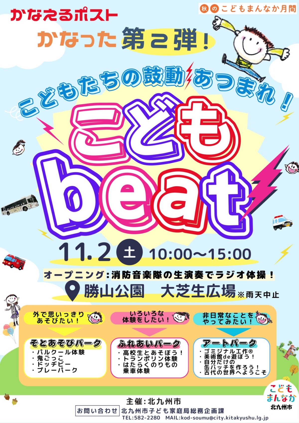 今年5月、北九州市は子どもから市に“かなえたいこと”を伝えてもらう取り組み「かなえるポスト」を実施。「こどもbeat」は、同企画で“かなったこと”の第2弾です。