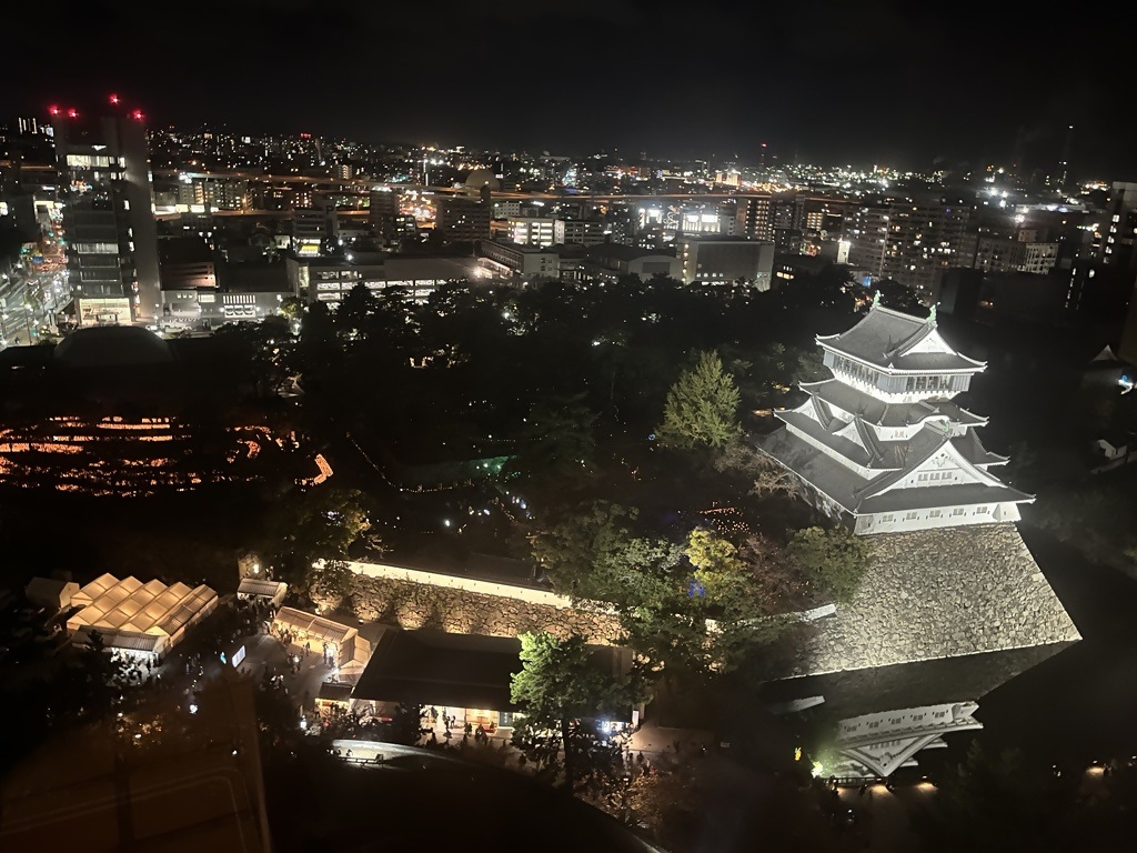 北九州市役所展望室から見下ろす「小倉城竹あかり」、紫川沿いの「小倉イルミネーション」、チャチャタウン小倉の観覧車など小倉の夜景を一度に楽しむことができます。