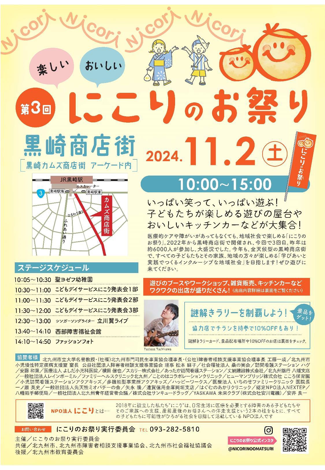 黒崎商店街で11月2日、医療的ケアや障害の有無に関わらず地域社会で楽しむイベント「第3回 にこりのお祭りが開催されます。