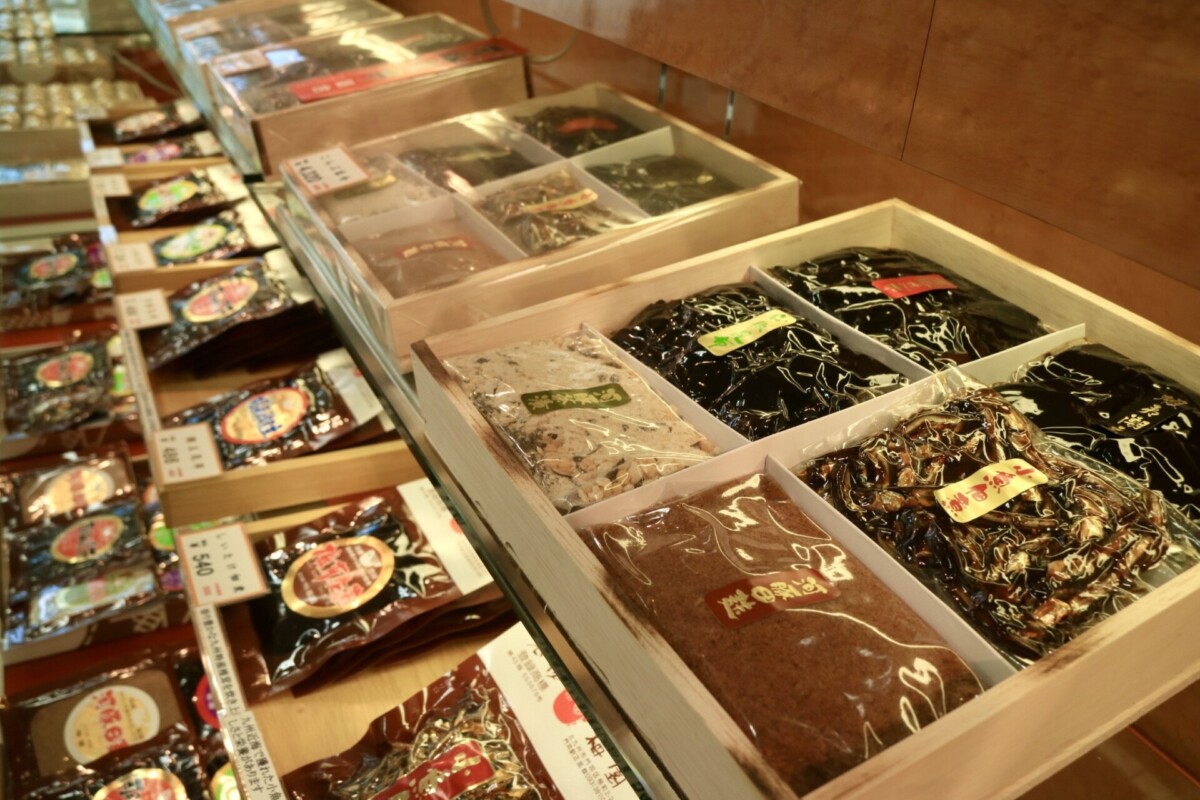 「昆布佃煮」は、河豚昆布・蝦夷潮主・山椒昆布・紫蘇昆布・椎茸昆布・糸作り昆布・河豚田麩・椎茸佃煮・小魚佃煮など、多数取り揃えています。