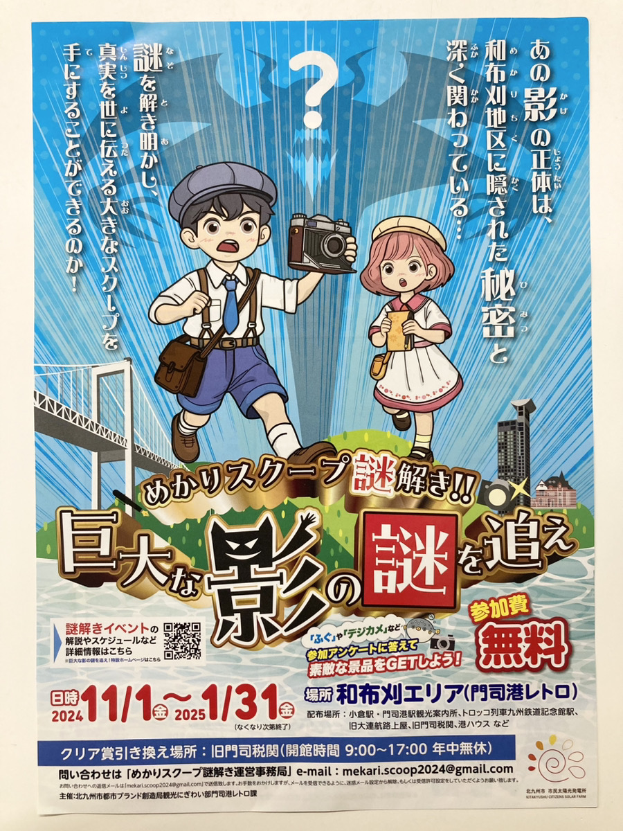 門司港レトロ・和布刈エリアを回る、謎解きイベント「めかりスクープ謎解き!!~巨大な影の謎を追え~」が、来年1月31日まで開催中です。