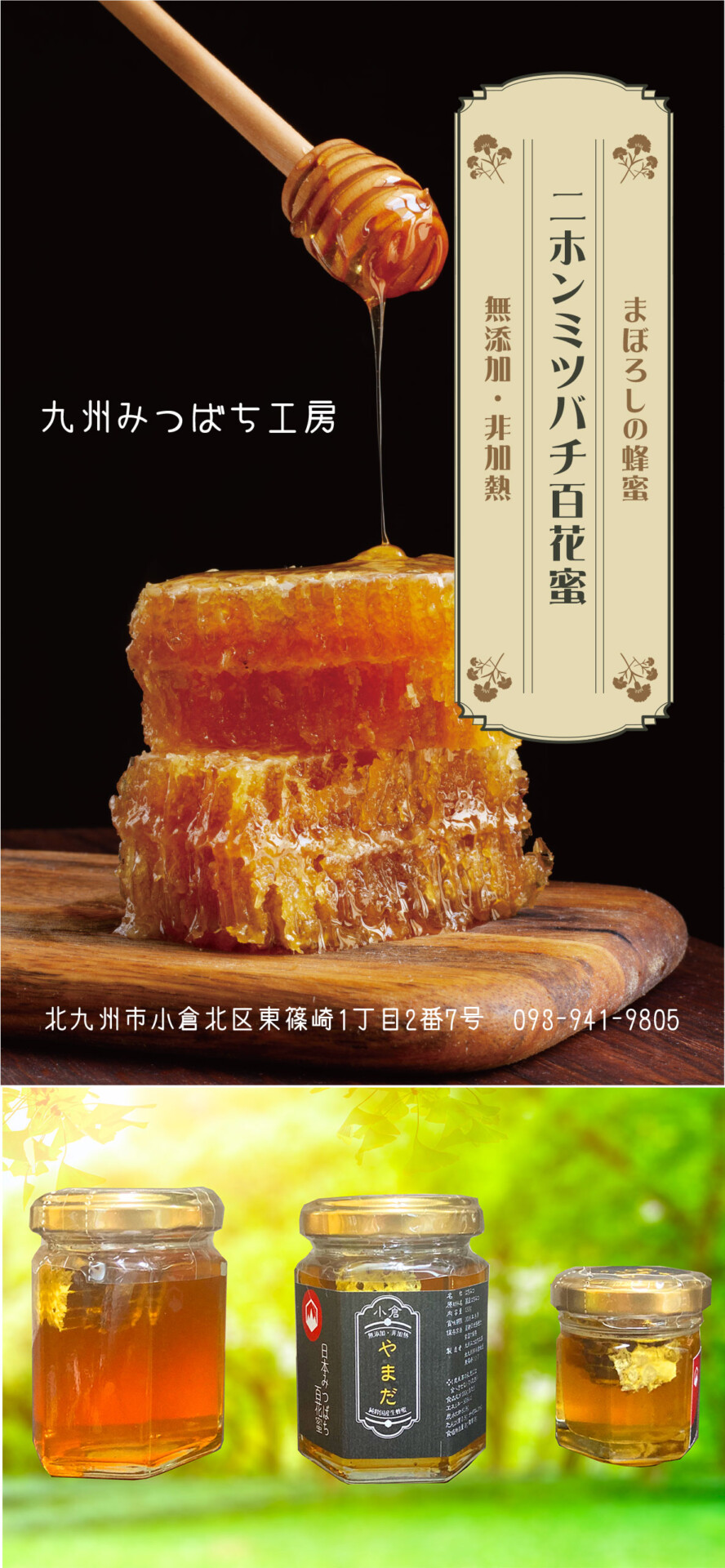 二ホンミツバチの巣蜜(コムハニー)入りのハチミツ新発売!/九州みつばち工房