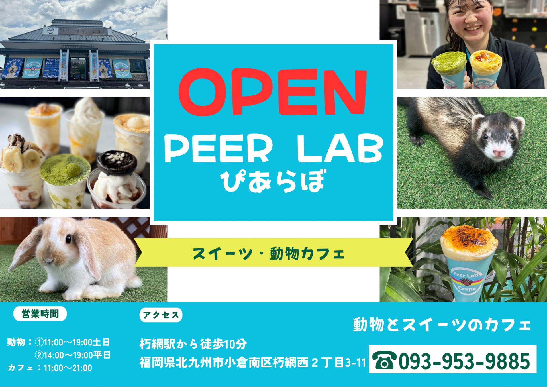 <小倉南区>スイーツ&動物ふれあいカフェ/PeerLab~ぴあらぼ~