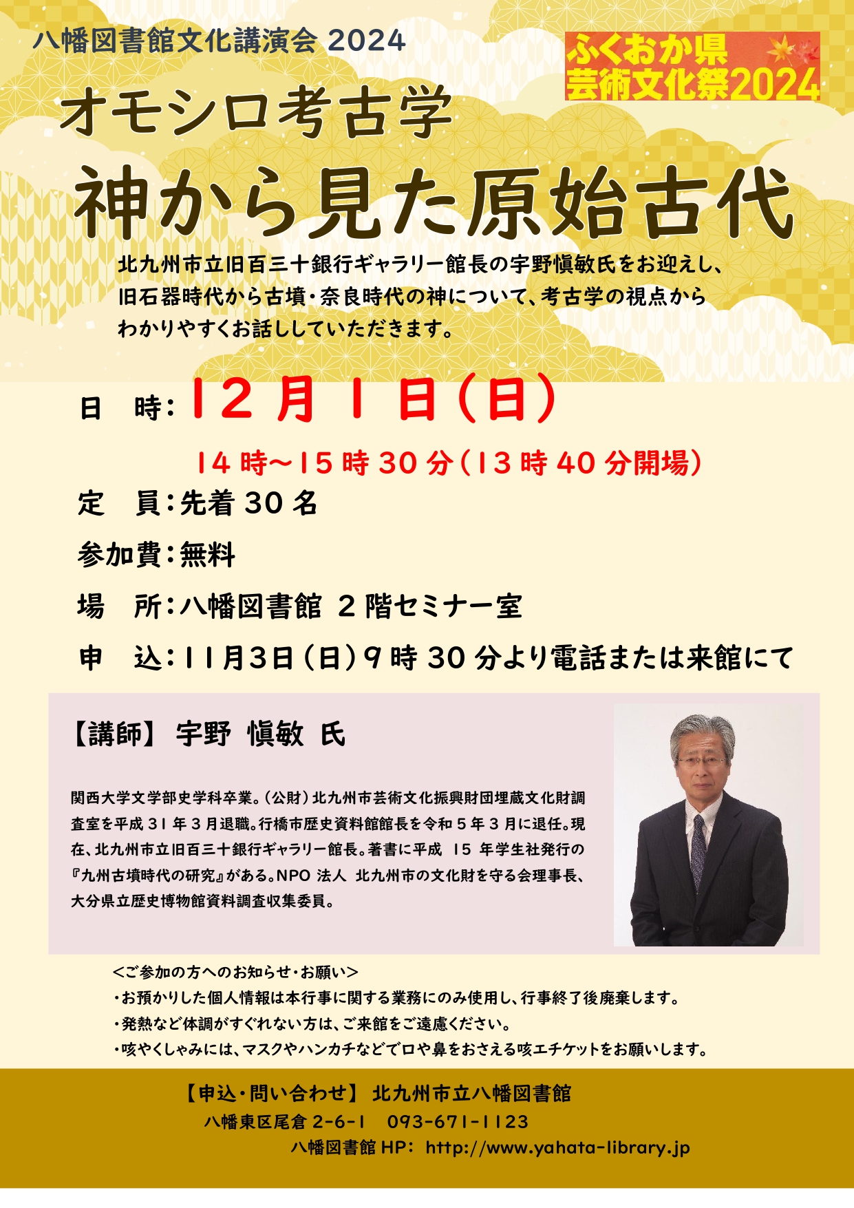 12月1日(日) 八幡図書館文化講演会「オモシロ考古学 神から見た原始古代」/北九州市立八幡図書館