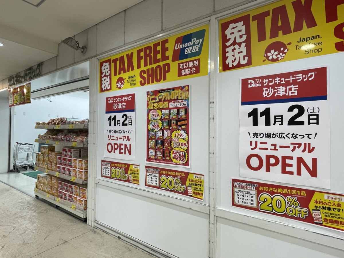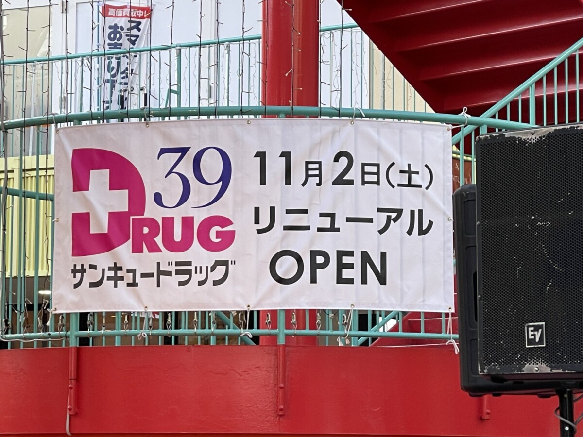 (アイキャッチ画像:サンキュードラッグ砂津店リニューアルオープンの旗)