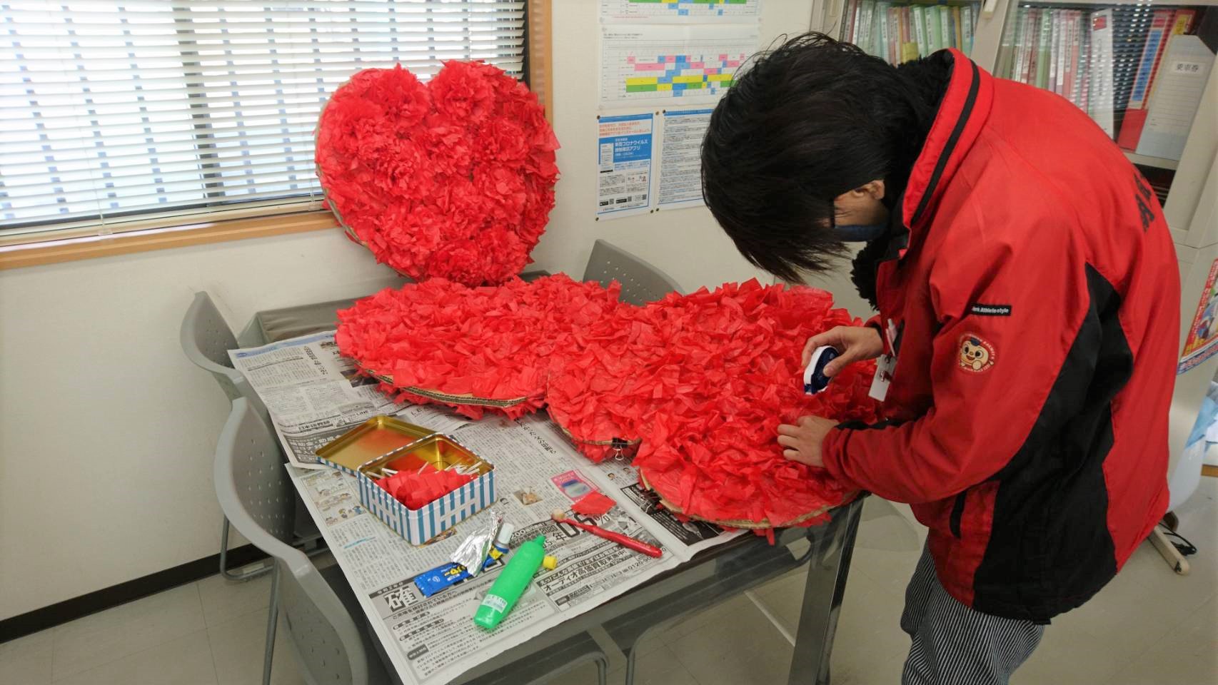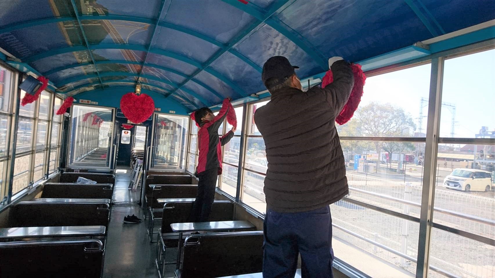 職員の手づくり感あふれるハートの飾りつけも登場「バレンタイン特別列車」