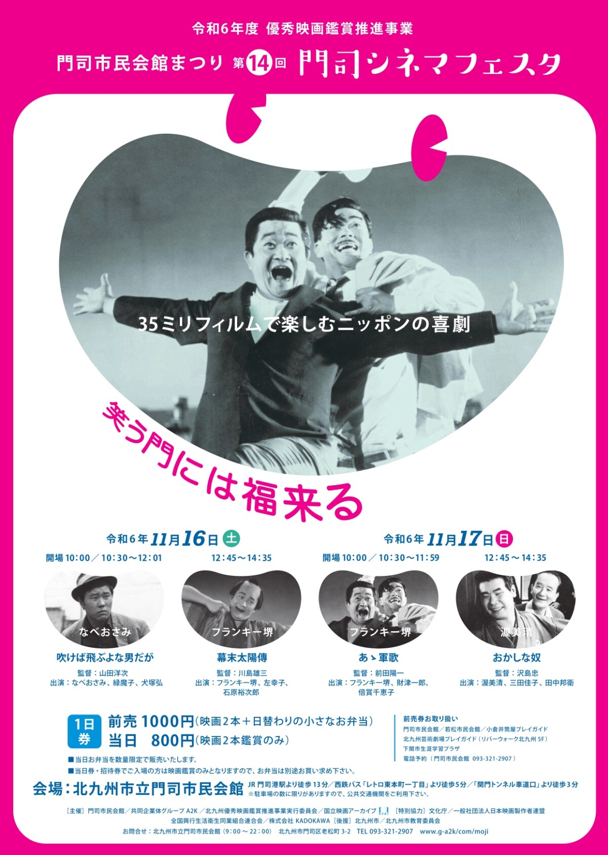 北九州市立門司市民会館(北九州市門司区老松町3-2)の大ホールで11月16日と17日の2日間、門司市民会館まつり「第14回 門司シネマフェスタが開催されます。