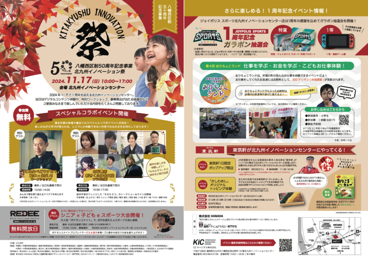 グランモール内にある北九州イノベーションセンター(北九州市⼋幡⻄区美吉野町16)で11月17日、開業1周年記念イベント「北九州イノベーション祭が開催されます。