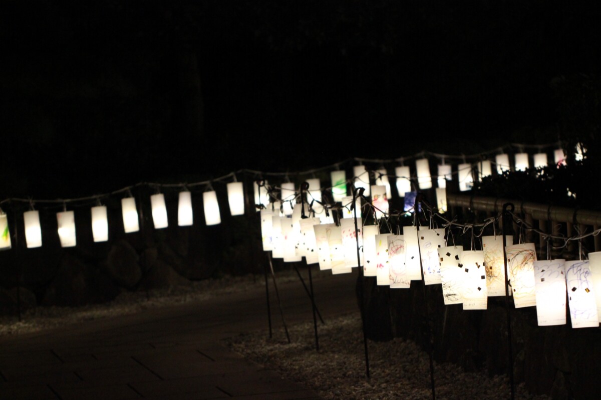 当日は、色とりどりのLEDライトや子どもたちが作成した約5000個の紙灯篭が幻想的にライトアップ。