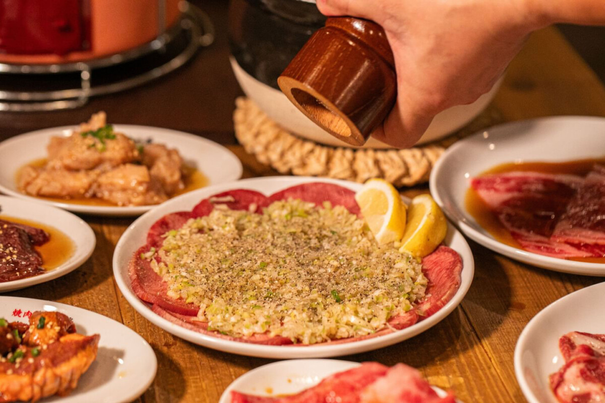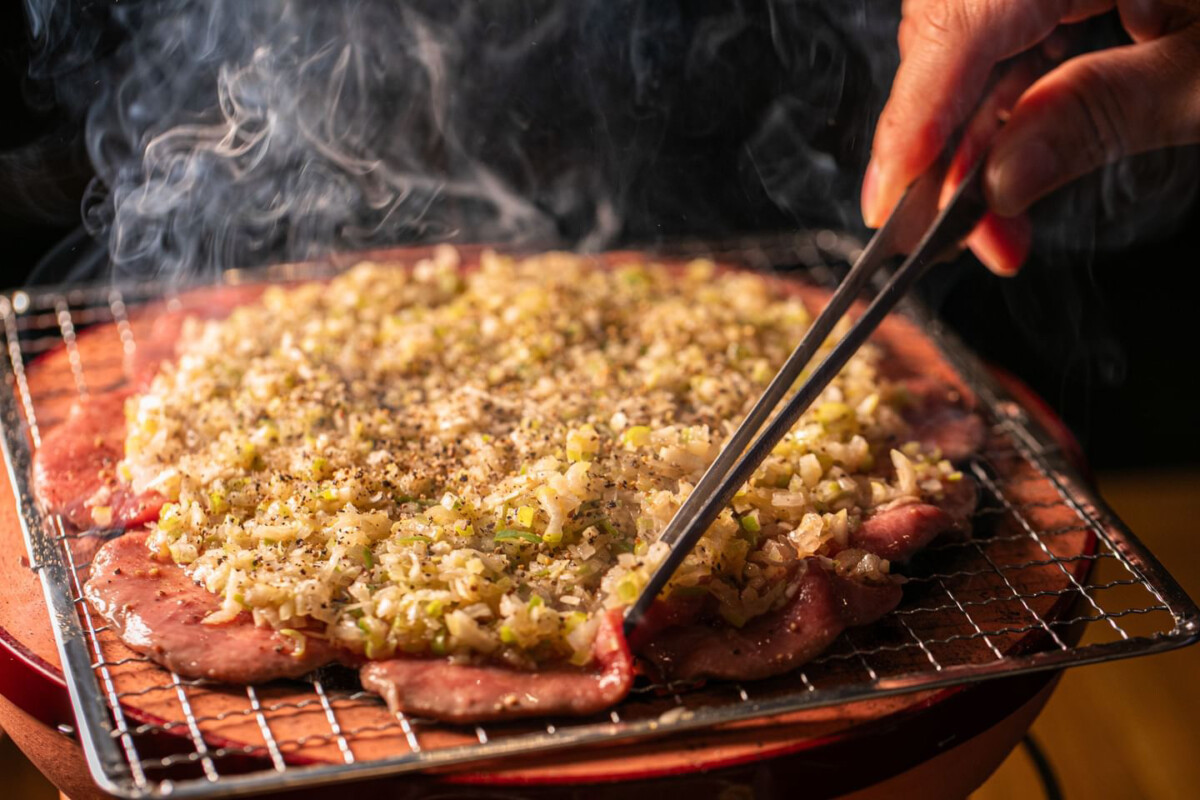 薄切りスライスの牛タンを敷き詰めて自家製のネギだれをトッピング。提供の際、「ストップ」という声掛けまでブラックペッパーをかけてくれます。お酒が進みそうですね。