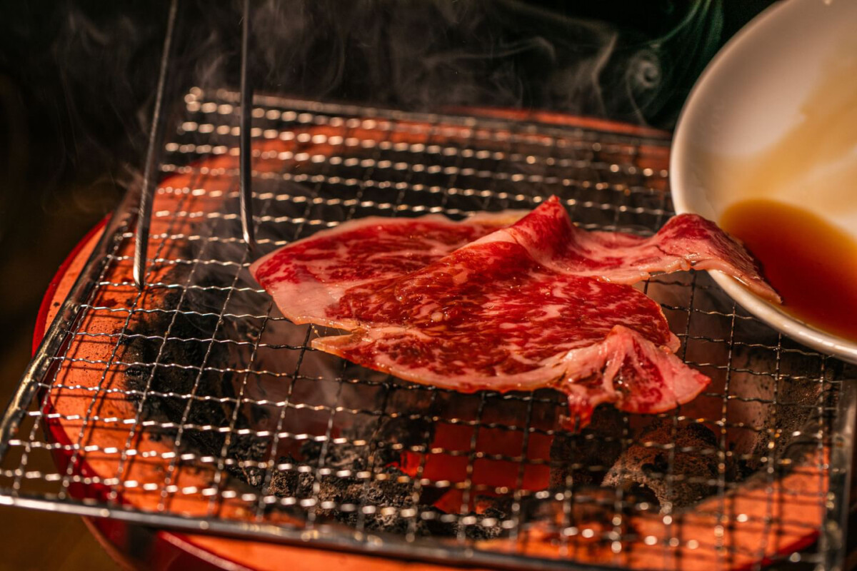 「焼肉 味一番 しょうちゃん」では、卓上の七輪で炭火焼きの焼き肉を味わうことが可能。店内はテーブル席以外にカウンター席も設けられています。