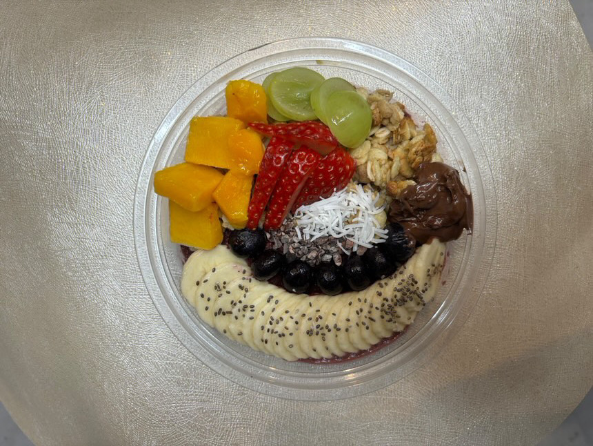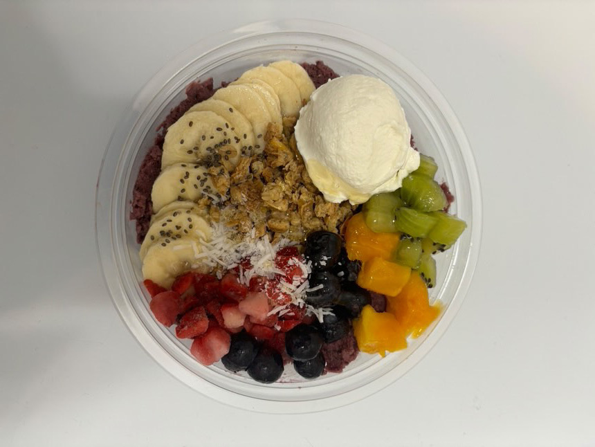 「Laki ‘s Bowl」は、テイクアウト専門でアサイーボウルやグリークヨーグルト、フルーツティーなどを販売しています。