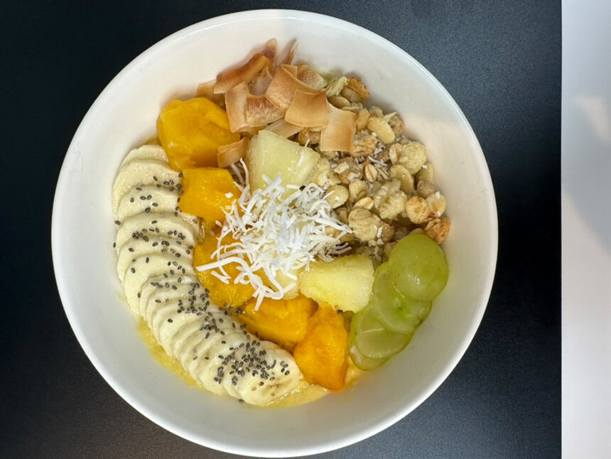 もう1つのおすすめは「トロピカルボウル」。マンゴーやバナナ、パイナップルなど南国の果物がふんだんに使用されています。