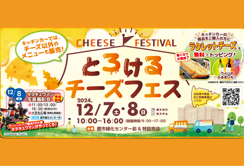 グリーンパーク/響灘緑地(北九州市若松区竹並1006)で12月7日と8日の2日間、チーズ料理や製品の魅力を堪能できる「とろけるチーズフェス」が開催されます。