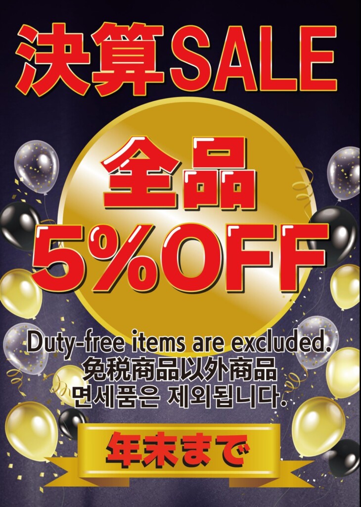 東証上場記念 全品5%オフの決算セール