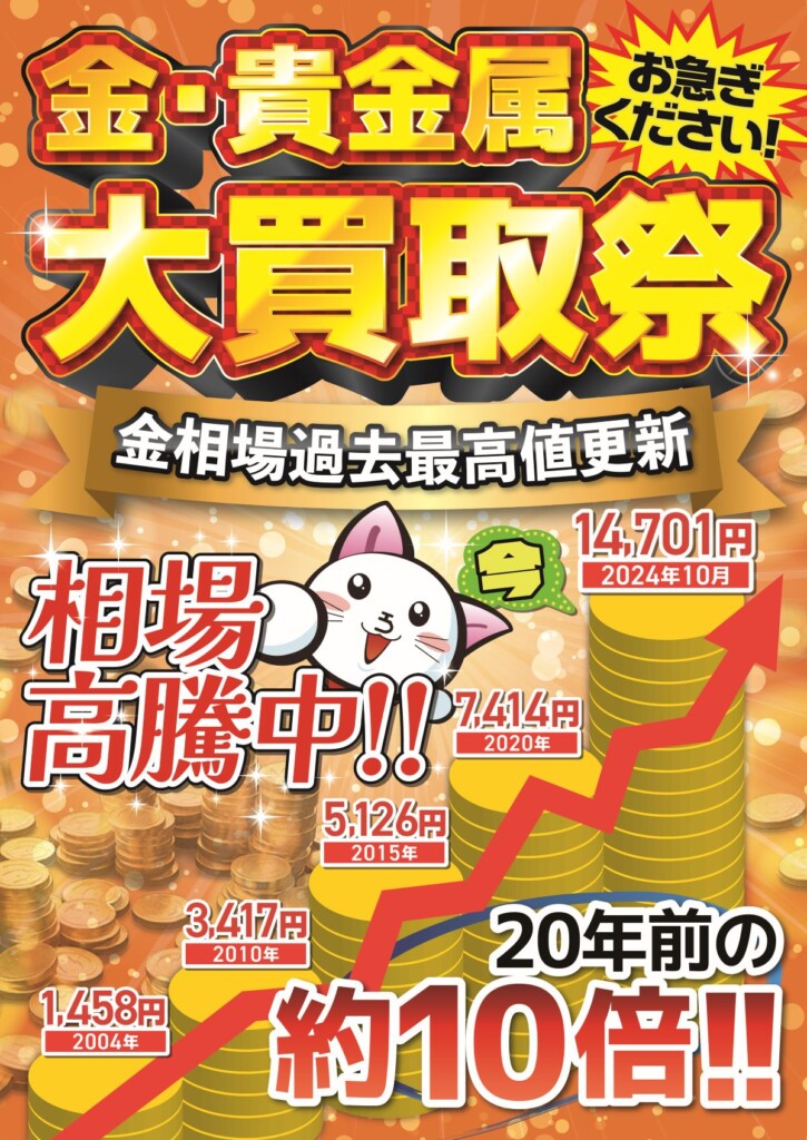 20年前買った金をお持ちの方はこの絶好のチャンスに査定だけでも試してみるのもいいかもしれません。