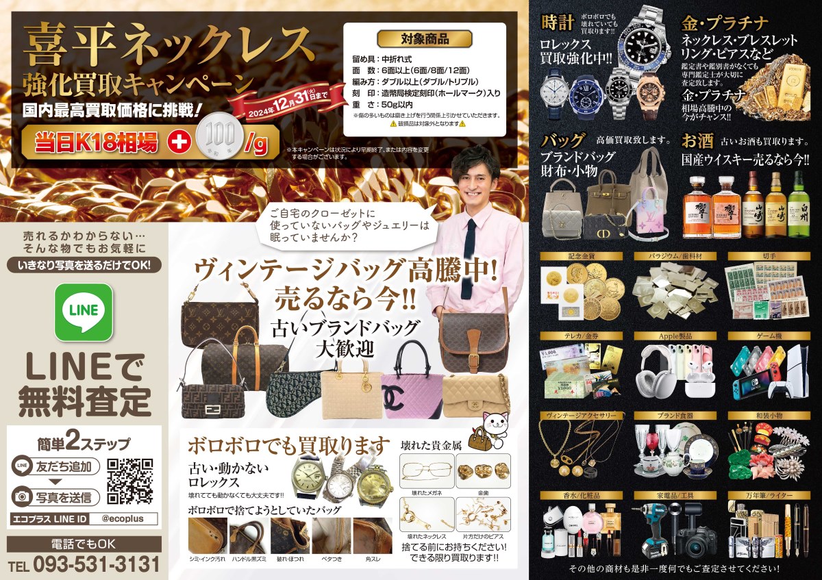 リサイクルショップ「エコプラス」が喜平・金・プラチナを高価買取できるワケ <東証上場記念決算セール>開催中!PR