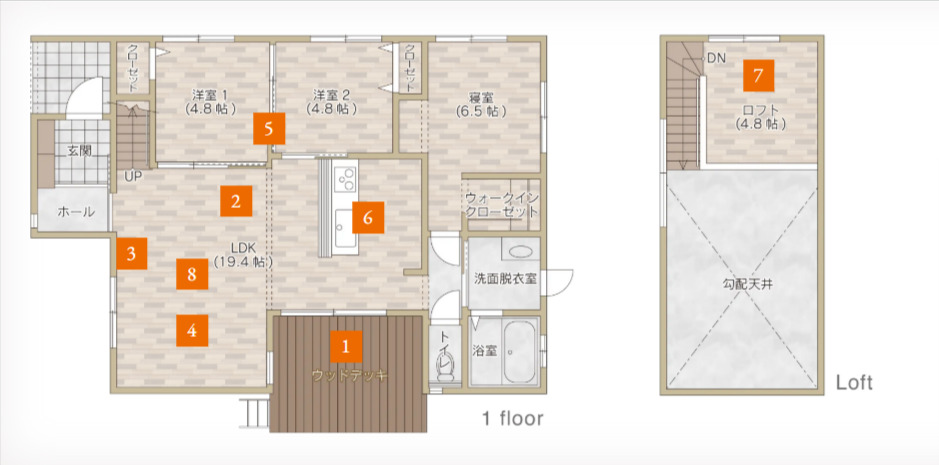 生活導線の良さや開放感といった従来のメリットに加え、ロフトや無垢材の床、ウッドデッキなど家族それぞれの心地良さを考えたプランになっています。