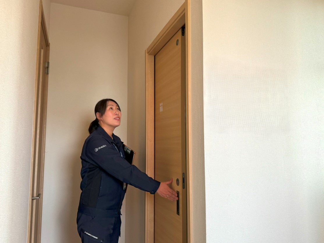 大英産業の家を購入すると、長くて30年のアフターフォローが保証されています。その中でも、私はカスタマーサービス課で、お家の困りごと全てに対応しています。