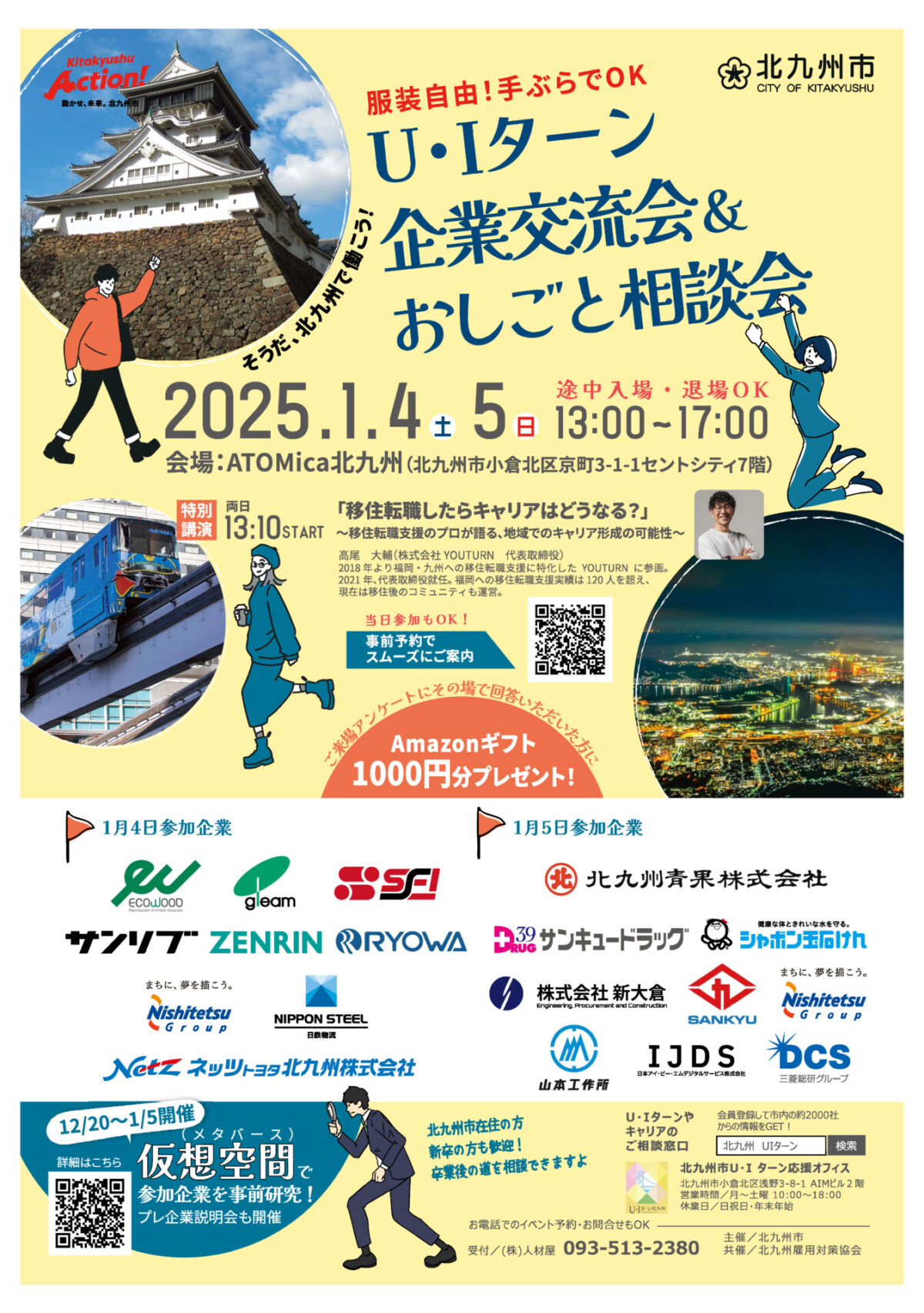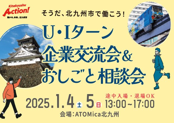 北九州市では、そんな人々を対象に、2025年1月4日(土)、5日(日)に開催される「お正月U・Iターン企業交流会&おしごと相談会」をはじめ、オンラインと対面でのさまざまなイベントを予定しています。