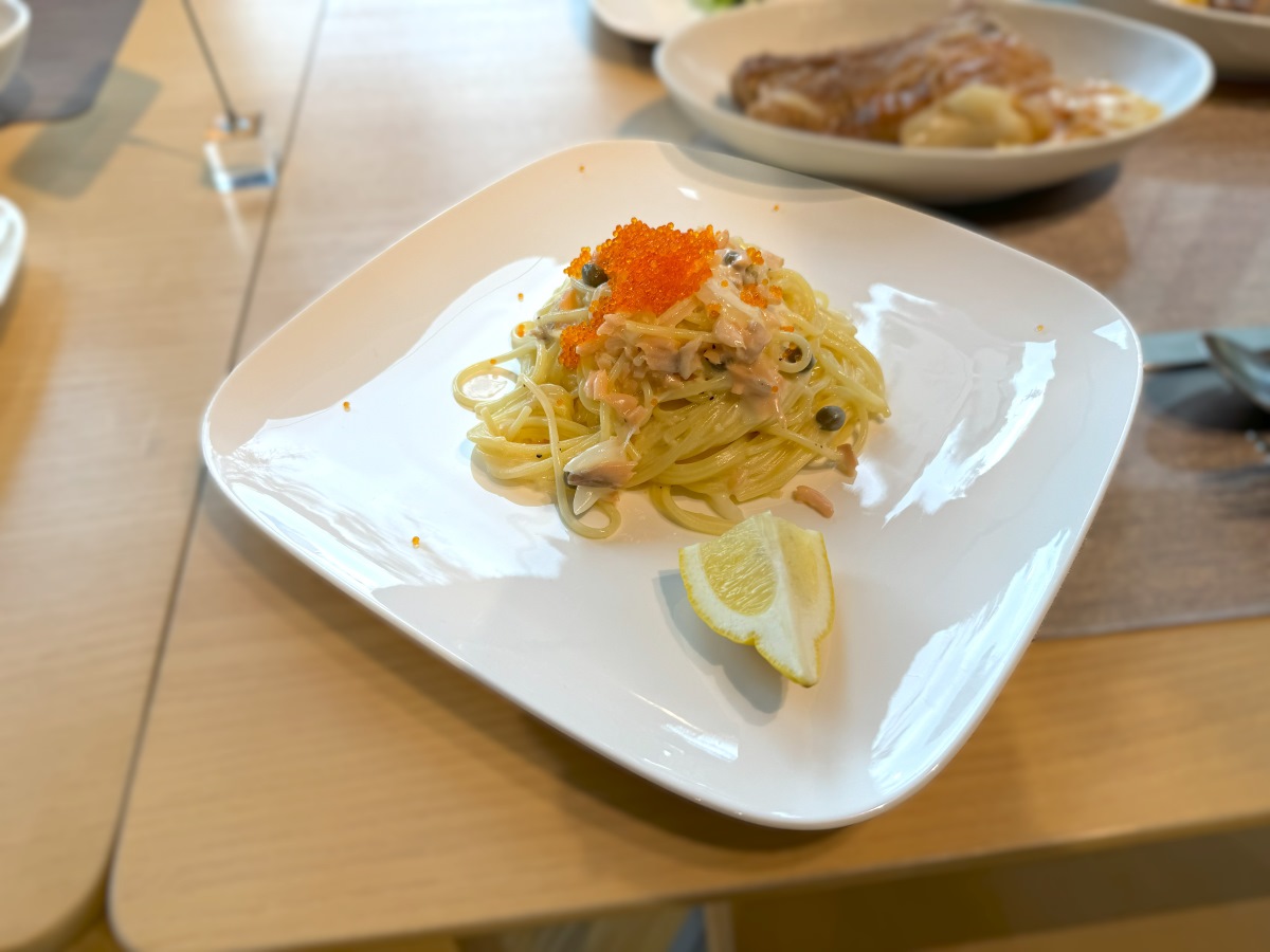 今回の講座では、「スペアリブとキャベツの煮込み」「オレンジサラダ ヨーグルト風味」「スパゲティ サーモンのクリーム煮」の3品を作りました。