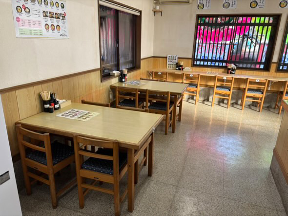 店内は、複数のカウンター席のほかテーブル席も設置されています。