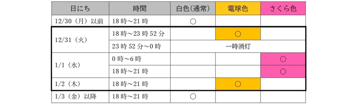 実施期間は12月31日から1月2日まで。帰省客や観光客が多く集まる年末年始にあわせ、関門橋のライトアップが白色からさくら色に変化します。紅白を演出し、正月のめでたい空間が広がるのだとか。