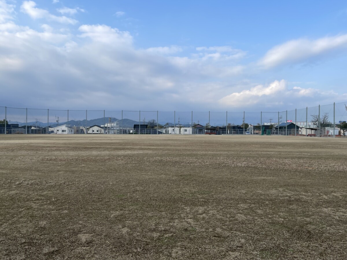 遊具がある広場の横はグランドがあり、取材時にはグラウンドゴルフを楽しんでいる人がいました。利用する際には管理運営委員会の許可が必要とのことです。
