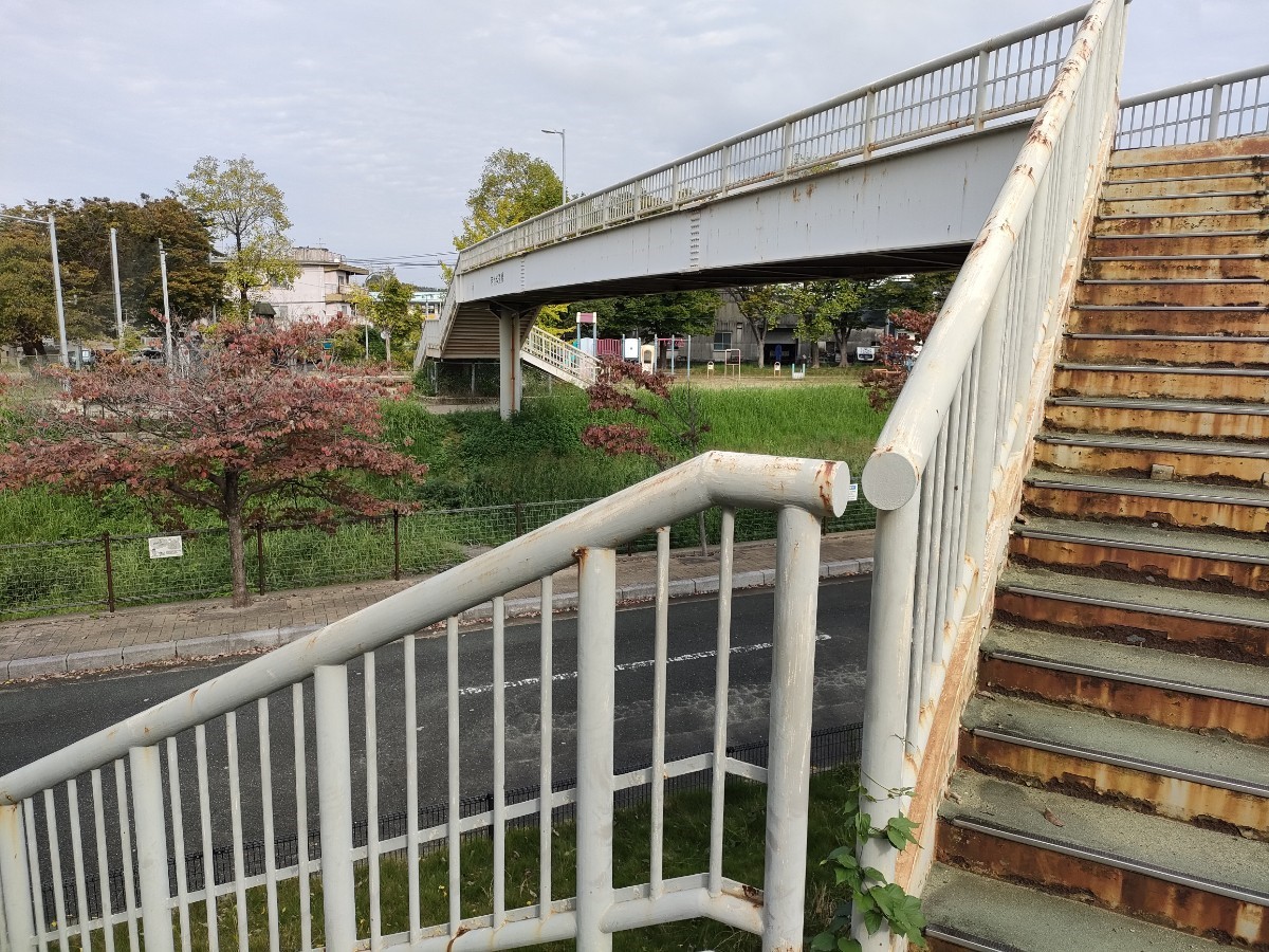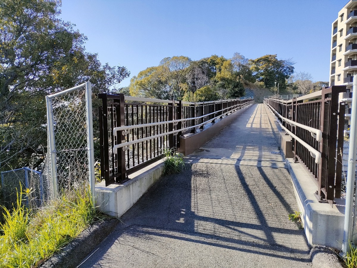 歩道橋を通り、途中から芝の方へ進むと、住宅地側公園の丘の上にたどり着きます。