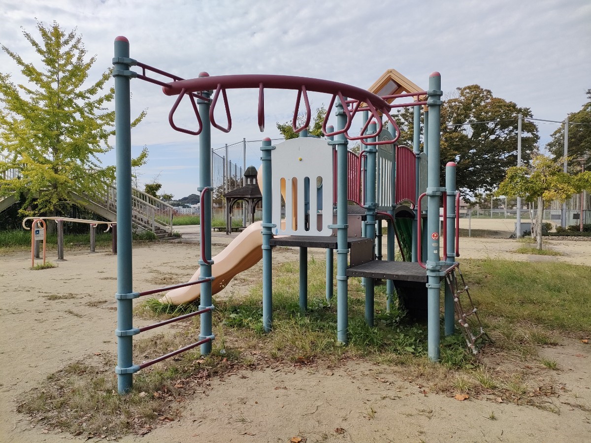 入り口から向かって右手には、遊具のある広場もありました。鉄棒の高さは低めで3段階に分かれているので、小さな子どもの鉄棒の練習にもよさそうです。