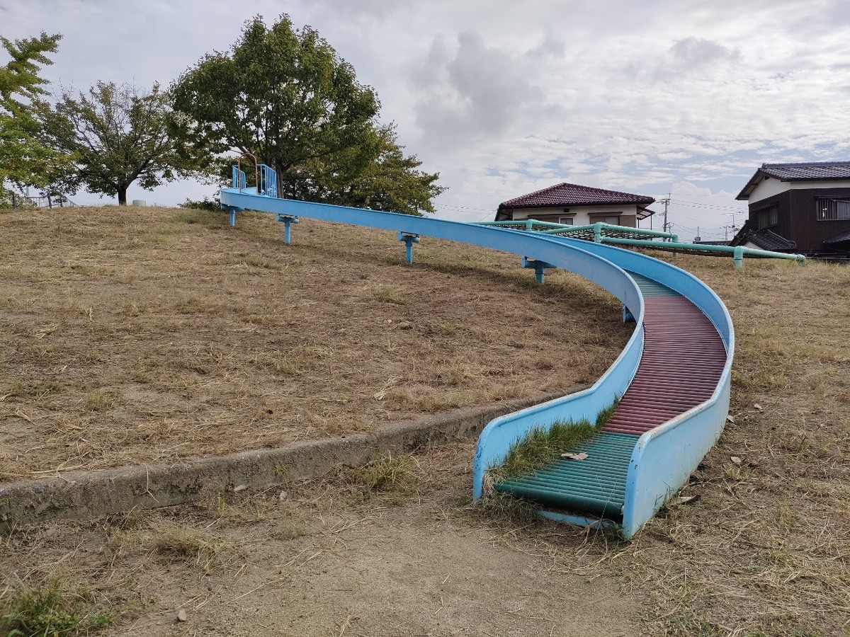 丘の上からは、長いローラーすべり台ネット遊具など住宅側公園のメイン遊具で遊ぶことができます。